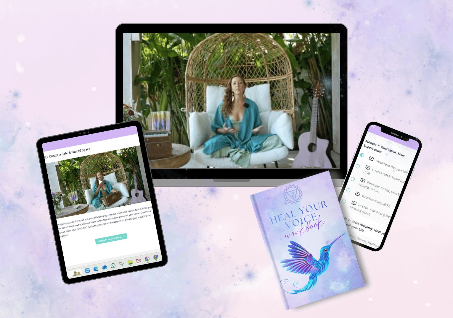 This journey includes vocal activation practices, guided pathways, the Vocal Activation Practice Vault library, and practices that help you awaken your voice, strengthen your presence, and express your truth with confidence.